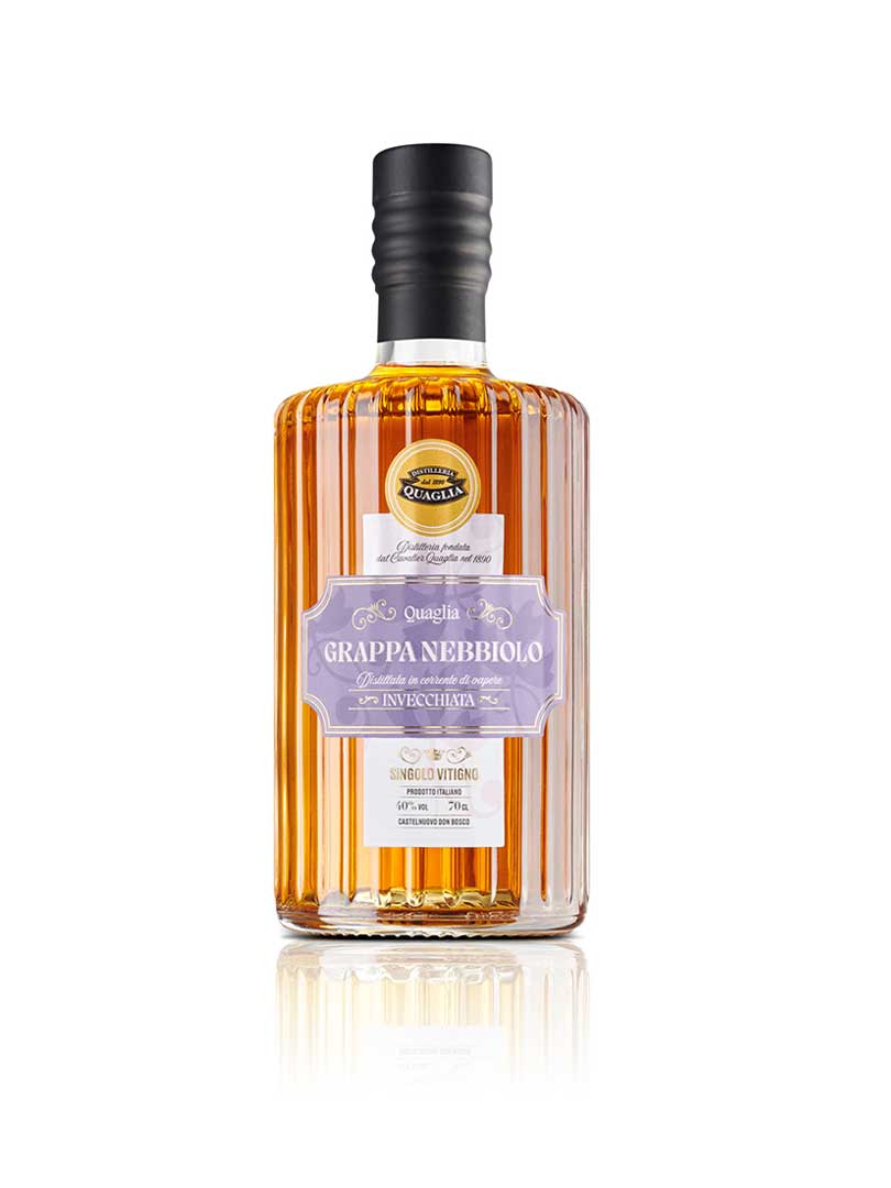 Grappa di Nebbiolo is produced from highly selected piedmontese pomace and distilled according to the traditional steam current method. The resting in oak casks gives a rich and dense grappa with a soft consistency and amber color. This grappa is enriched thanks to an harmonic olfactory panorama characterized by notes of sandalwood, morello cherry and spices.