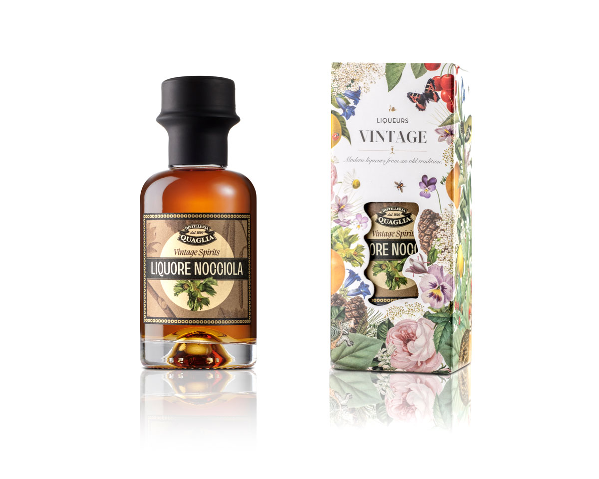 The distillation of the hazelnut infusion, together with a selection of spices such as rhubarb and bourbon vanilla pods from Madagascar, gives life to a full-bodied, elegant and warm hazelnut liquor. Bright and amber, dominated by evident notes of toasted dried fruit, it conquers the palate with a silky texture and a consistent aftertaste.